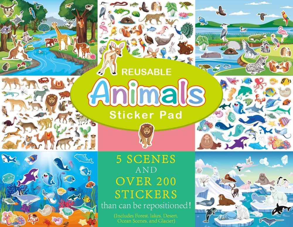 ملصقات تعليمية للأطفال تحتوي على أكثر من 200 قطعة قابلة لإعادة الاستخدام مع 5 مشاهد مختلفة، تعزز الإبداع والتفاعل من خلال تركيب الحيوانات والعناصر المتنوعة بطريقة ممتعة وتعليمية.